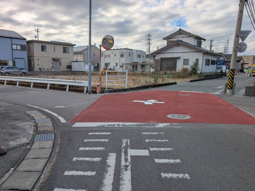 見通しの悪い交差点でしたが、カラー化することで視認性を高め